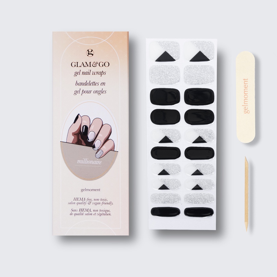 Our GLAM & GO gel nail wraps ensure that no matter how complex your chosen nail design, the application process remains incredibly simple. Our GLAM & GO gel nail wraps require no glue, base coat, or top coat—just peel them off the packaging, apply them to your nail, trim to size, cure twice, and voilà!